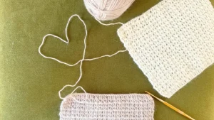 編み物の場合は、編地が伸びるから布より少し楽ね。