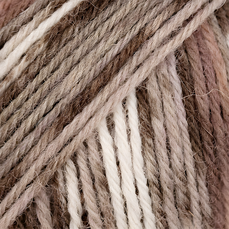生成りをベースに、チョコレートブラウンやモカの濃淡がやさしく重なった、落ち着きのあるカラー。